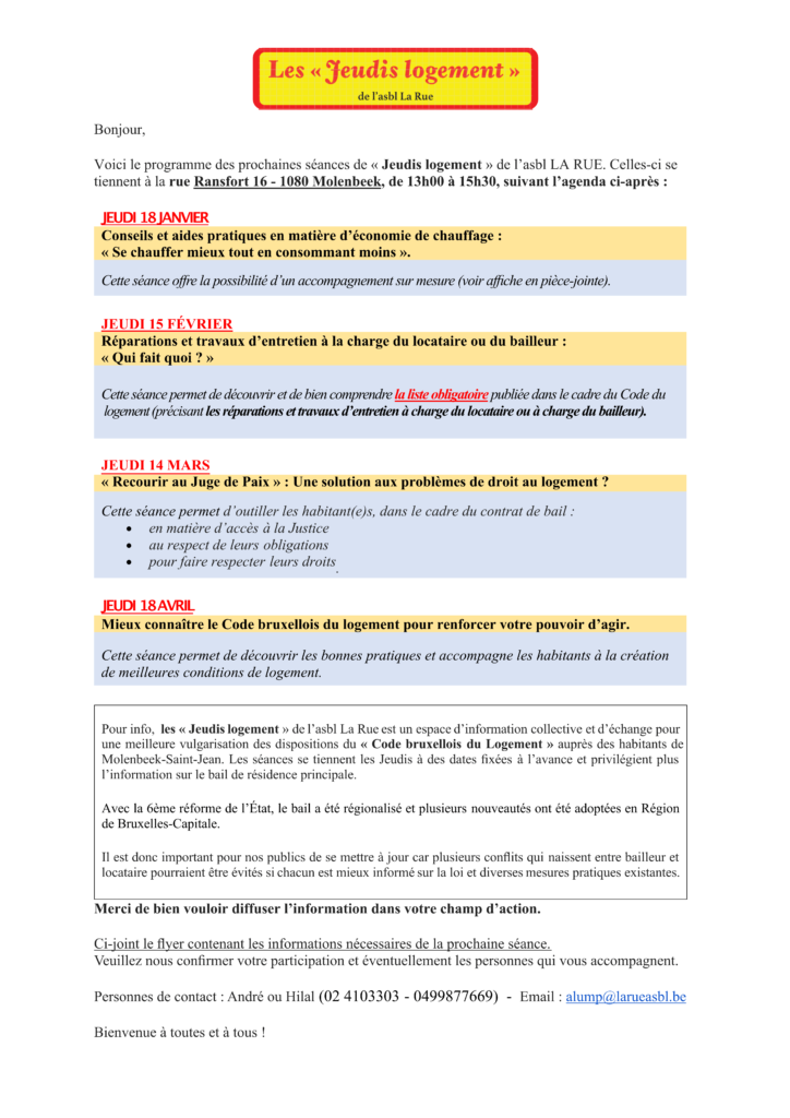 Prochain Jeudi Logement le 14/03/24 6 mars 2024 Logement Cliquez ici pour Télécharger l’affiche Vous devriez également aimer Des aides pour rénover votre logement ! Participez au projet Rénovation + 24 juin 2025 Offre d’emploi – Conseiller énergie 7 août 2025 Séance d’info sur le thème de la copropriété 26 mars 2025