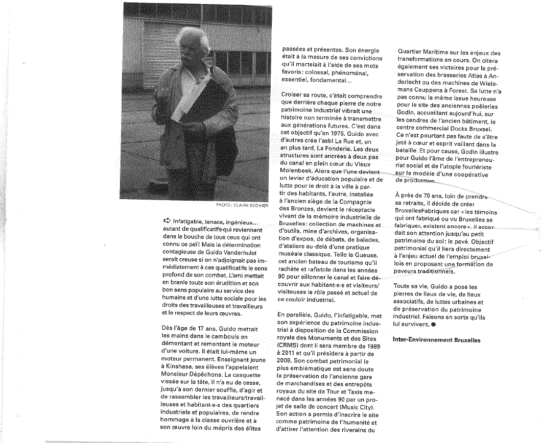 - Bruxelles en mouvements rend Hommage à Guido Vanderhulst, fondateur de La Rue, décédé le 15.11.2019